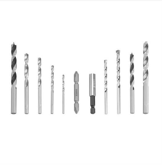 - مجموعه ای متنوع از اندازه ها و انواع بیت ها، مته های پیچشی، مته های بنایی و غیره با کاربردهای متنوع و گسترده