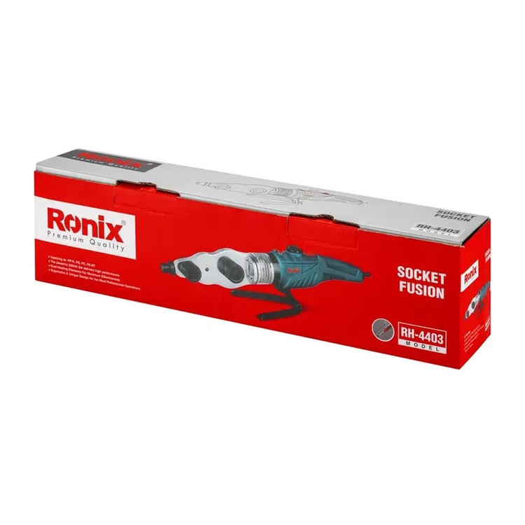 اتو لوله سبز RH-4403 رونیکس مجهز به یک موتور 2000 واتی قدرتمند بوده و قابلیت تنظیم درجه حرارت در این ابزار، از 50 تا 300 درجه سانتیگراد متغیر است. این محدوده دمایی بالا موجب میشود که قطورترین لولههای متناسب با این ابزار نیز به راحتی و به سرعت جوش داده شوند. اتو لوله RH-4403 رونیکس، از این جهت دستگاه جوش لوله سبز گوشهزن نامیده میشود که در قسمت انتهایی راکت خود دارای سوکتی است که جوشکاری در محیطهای محصور با دسترسی دشوار را برای ترمیم و تعمیر لولههای فرسوده امکانپذیر میکند.