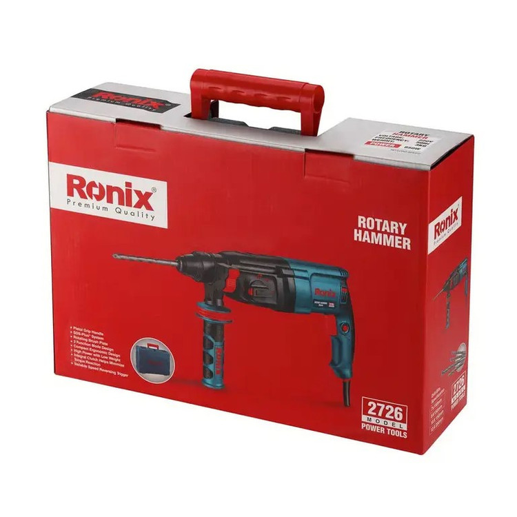 دریل بتنکن 2726 رونیکس، مجهز به موتور قدرتمند 850 وات، گیربکس صنعتی مقاوم و باکیفیت و بدنهای با طراحی ارگونومیک، سبکوزن و مستحکم است. همچنین، سیستم ابزارگیر آن از نوع SDS-PLUS یا چهارشیار انتخاب شده است که میتواند متههایی با قطر 26 میلیمتر را ثابت نگه دارد و موجب افزایش تاثیر عملکرد این محصول شود.