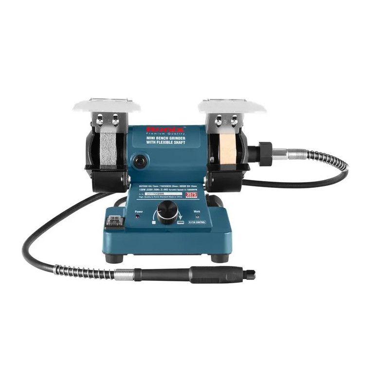 چرخ سنباده یا سنگ فرز رومیزی، ابزاری است که دو طرف آن، دو صفحه سنباده یا پولیش تعبیه شده و از آن به صورت ثابت روی میز استفاده میشود. رونیکس، مدلهای متفاوتی از چرخ سنباده را متناسب با نیاز کاربران طراحی و تولید میکند. چرخ سنباده مینیاتوری 3575 رونیکس با شلنگ سه نظامدار، ابزاری چندمنظوره است و برای فرزکاری، سوراخکاری، پولیش، سنبادهزنی و حکاکی سطوح مختلف از آن استفاده میشود.