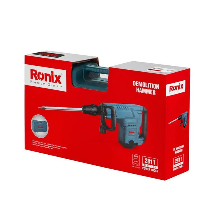 چکش تخریب قدرتمند با قابلیت مانورپذیری بالا از نیازهای همیشگی در امور ساختمانی است. چکش تخریب 11 کیلویی 2811 رونیکس نیز با دقت و تمرکز بر همین موضوع طراحی و تولید شده است. کافی است کلید ضد غبار آن را فشار دهید تا موتور 1800 وات آن با انتقال قدرت به بخش شاتون و پیستون، توان ضربه 25 ژولی را با تعداد 1900 ضربه در دقیقه به سیستم قلمگیر پنجشیار آن انتقال داده و به راحتی به سختترین مصالح نفوذ کند.