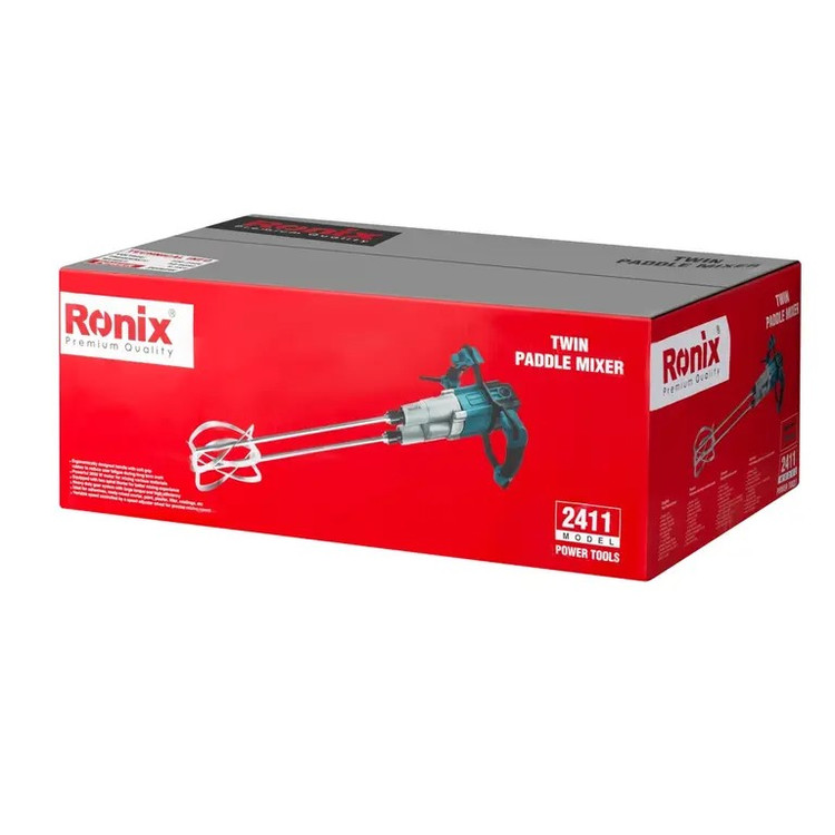 میکسر برقی دو محوره صنعتی 2411 رونیکس ابزاری کارآمد برای مخلوط و ترکیب کردن مواد و مصالح مختلف است. سرعت این دستگاه با موتور 2050 واتی، در حالت بیباری به 840 دور بر دقیقه میرسد.