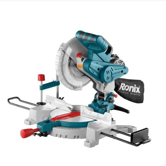 ارائهشده در جعبه رنگی رونیکس به همراه کیسه غبارگیر، آچار آلن، صفحه عریضشونده، ذغال، دسته، صفحه تنظیم طول برش، گیره نگهدارنده قطعه کار