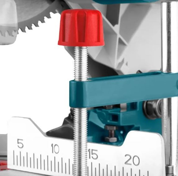 تیغه ارهی الماسه TCG؛ قطر صفحهی برش 255 میلیمتر که امکان برش MDF در ابعاد و زوایای زیر را فراهم میکند: 140×70 میلیمتر در زاویه صفر بر 90 درجه؛ 100×70 میلیمتر در زاویه 45 بر 90 درجه، 140×42 میلیمتر در زاویه صفر بر 45 درجه و 100×42 میلیمتردر زاویه 45 بر 45 درجه؛ قابلیت انجام برش زاویهدار از دو موضع کفی و بازویی