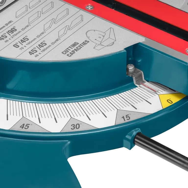 - مجهز به سیستم قفل کن پیشرفته و سریع میز برش در 9 زاویه کاربردی جهت انجام برش های بازویی