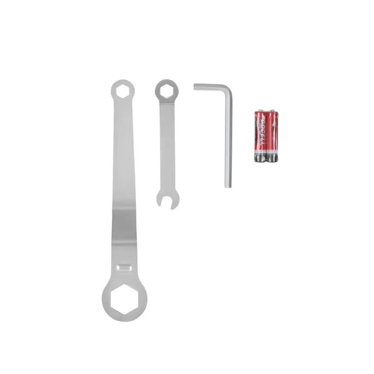 "یک عدد دستگاه با نور لیزر سه عدد آچار یک عدد نقاله یک عدد گونیا یک عدد میله راهنما"