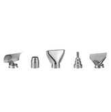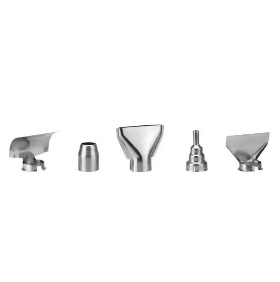 5 عدد نازل جهت برطرفکردن نیازهای مختلف؛ نازل محافظ شیشه به منظور محافظت از شیشهها در زمان رنگزدایی از چارچوب و قاب؛ نازل قاشقی انعکاسی برای لحیم لوله؛ نازل مخروطی برای جوشکاری و جداکردن بوش با گرمادادن قسمت کوچک آن؛ نازل دمماهی جهت خشککردن و یخزدایی با حرارتدادن قسمت بزرگ آن؛ کاردک دستی جهت رنگزدایی