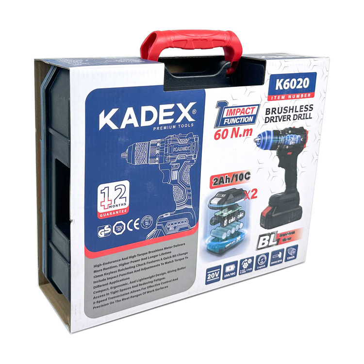 یک جفت باتری 20 ولت با ظرفیت 2 آمپرساعت و یک فست شارژر، کیف BMC مقاوم در برابر ضربه